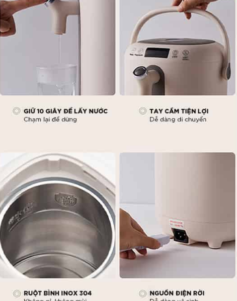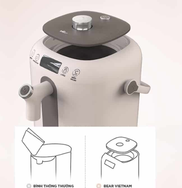 • Thẩm mỹ: Bình thuỷ điện Bear có thiết kế hình trụ nhỏ gọn, màu sắc nhã nhặn