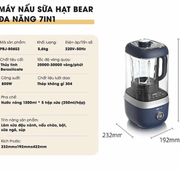 Tên sản phẩm: Máy làm sữa hạt đa năng cách âm Bear PBJ-B06S2