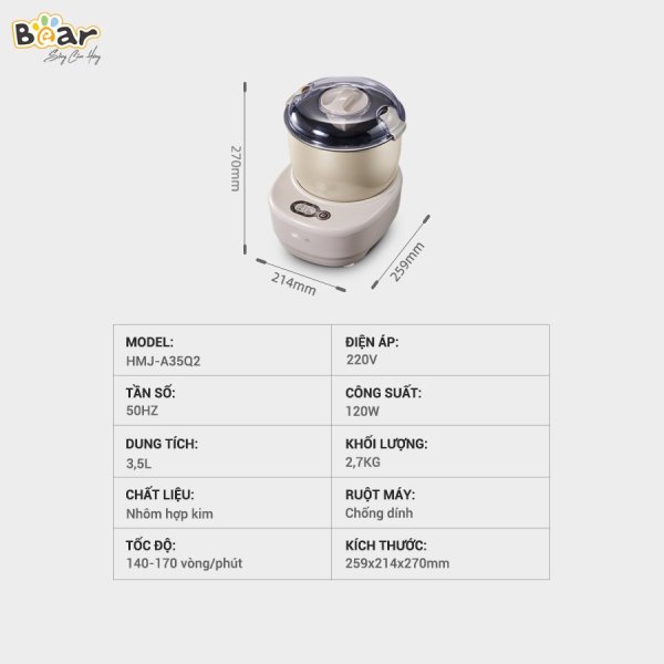 Máy Trộn Bột, Nhào Bột Đa Năng Bear HMJ – A35Q2