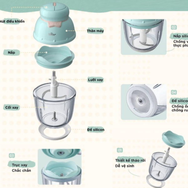 Chức năng chính của sản phẩm: Xay thực phẩm ăn dặm, Xay gia vị, rau củ nấu nướng hàng ngày