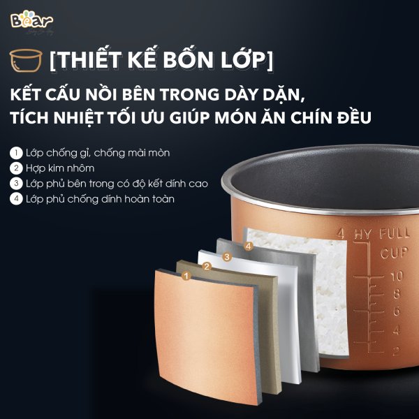 - Cấu tạo 4 lớp dày dặn, cùng với 9 chế độ nấu đa dạng