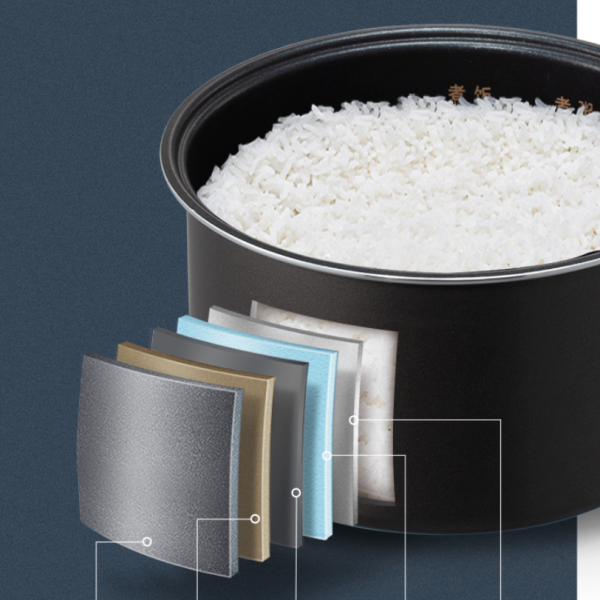 Lớp vỏ của nồi được làm bằng chất liệu nhựa cao cấp PP, chịu được nhiệt độ cao, không chưa chất gây ung thư, an toàn khi sử dụng và bền bỉ với thời gian. Lòng nồi được thiết kế 5 lớp, Van thoát hơi và lòng nồi chống dính bên trong có thể giữ hơi và nhiệt cho cơm tơi xốp hoàn hảo mọi lúc.