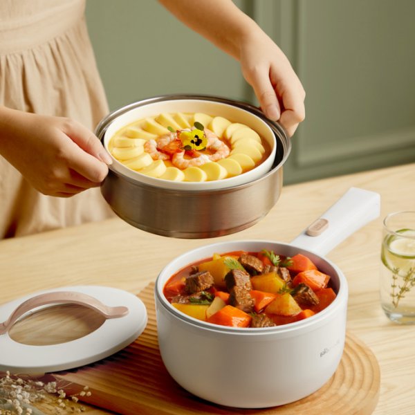 – Nồi điện có dung tích 1.6L dành cho 1-3 người ăn