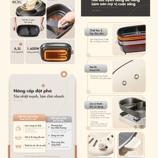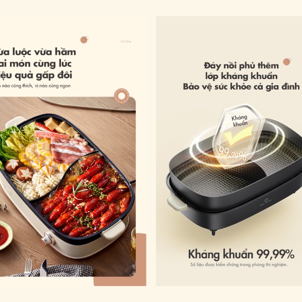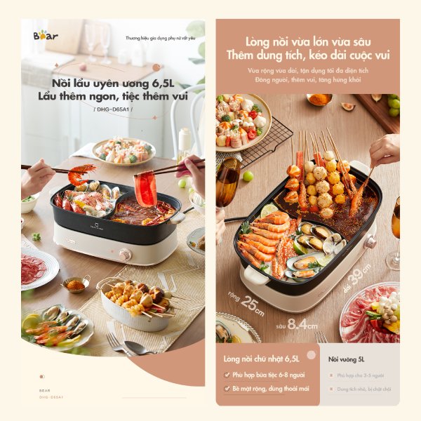 Nồi Lẩu Hai Ngăn Bear Cao Cấp DHG – D65A1